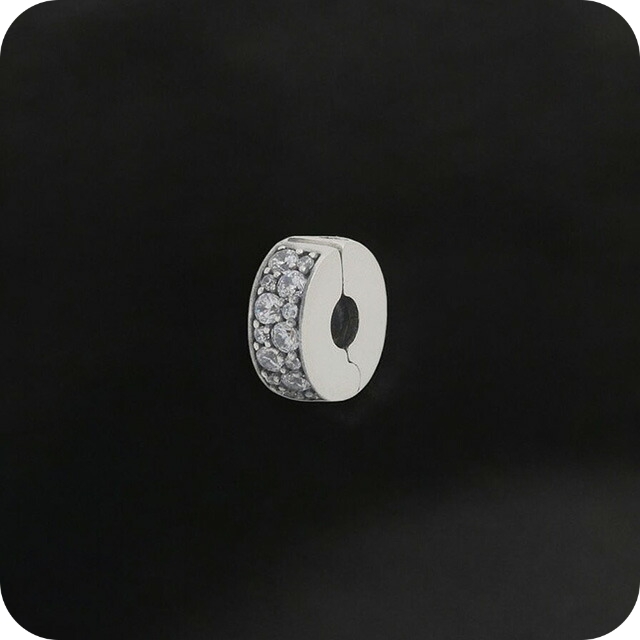 パンドラ PANDORA Clear Pav Clip Charm ブレスレットチャーム 791817CZ レディース シルバー ブランド ◆このPandoraクリップチャームは、実用性と美しさを兼ね備えた素晴らしいアイテムです!スターリングシルバーに輝くキュービックジルコニアが施されており、パヴェスタイルのデザインが華やかさを引き立てます。チャームをしっかりと固定し、ブレスレットやネックレスのスタイリングを整えるだけでなく、キラキラとした輝きがアクセントとして加わり、より洗練された印象を与えてくれます。 シリコングリップ内蔵で、チャームを好きな位置に確実に固定できる点も便利で、ブレスレットをしっかりと仕分けることができます。Pandoraのバングルやスネークチェーンネックレスなど、ほとんどのブレスレットに合わせてスタイリングでき、他の部分でもアレンジを楽しめます。 一方で、スレッド付きのブレスレット(チャームディバイダーが高く上がっているタイプ)には取り付けできないので、その点に注意が必要ですが、他のブレスレットでの使用にはピッタリのアイテムです。シンプルでありながら、スタイリッシュさをプラスする完璧なアクセサリーです!