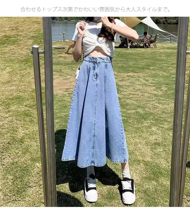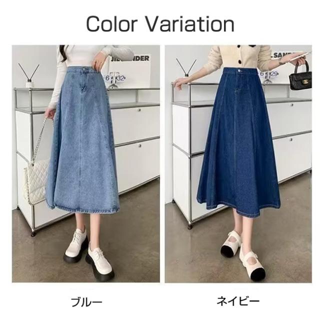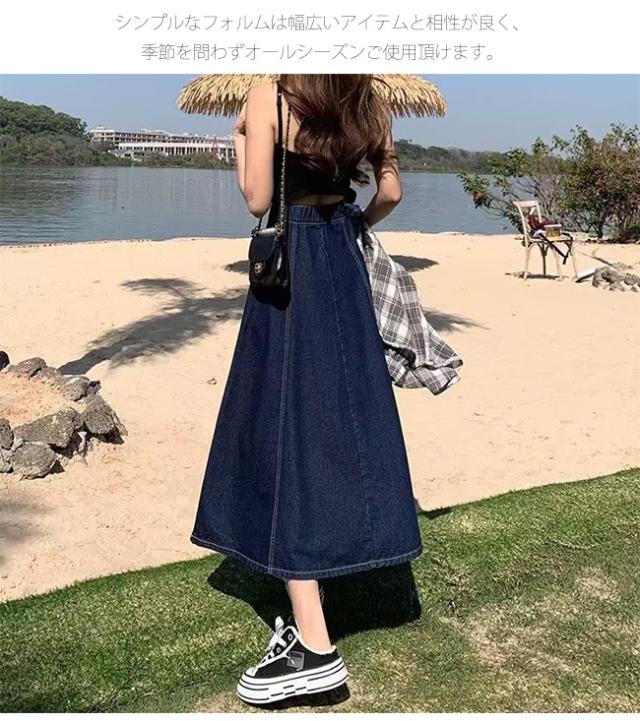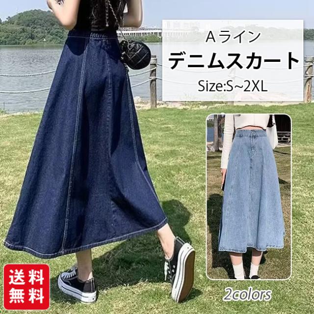 デニムスカート フレアスカート ロング スカート Aライン ウエストゴム レディース カジュアル