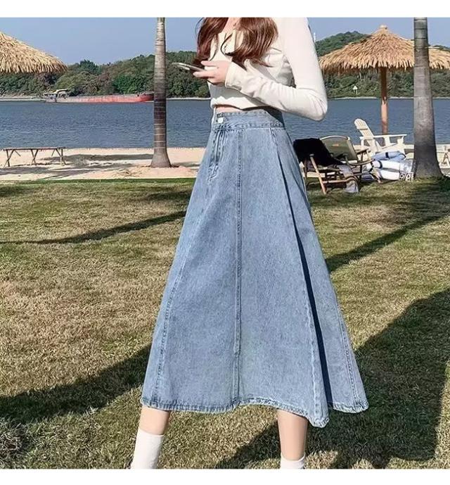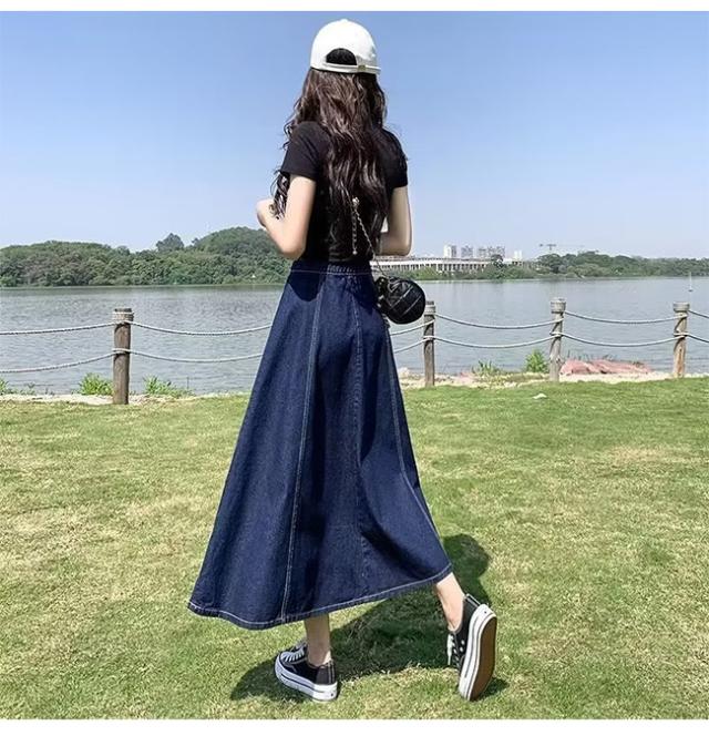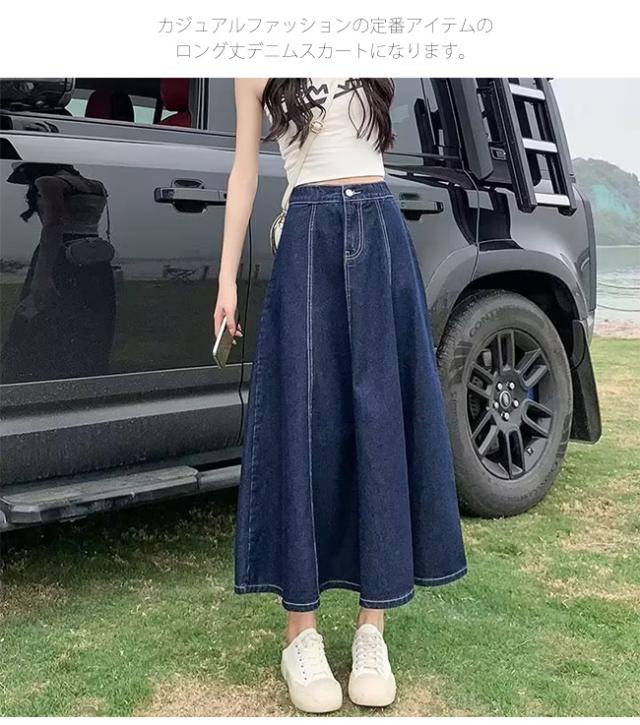 カジュアルファッションの定番アイテムのロング丈デニムスカートになります。
