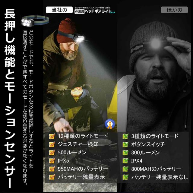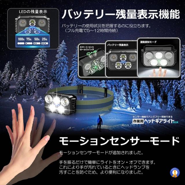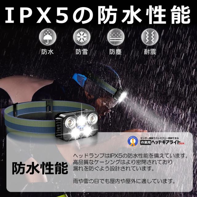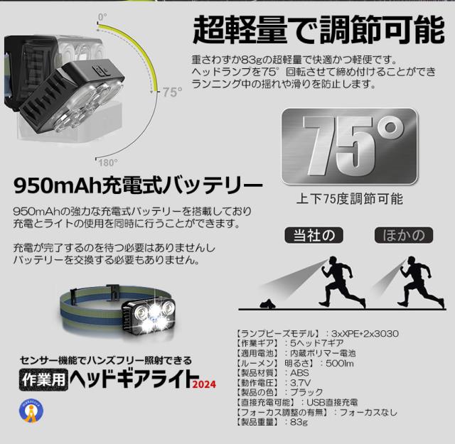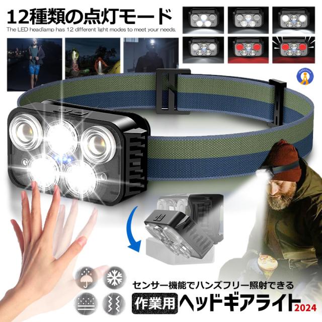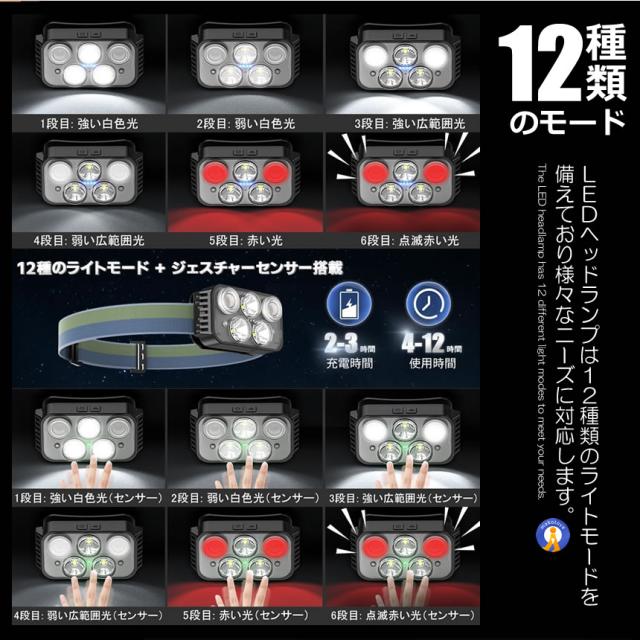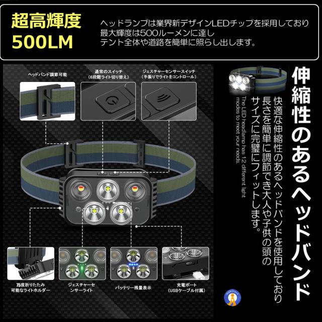 5個セット ヘッドライト USB充電式 2024 高輝度 LED ヘッドライト 赤&白ライト ジェスチャー検知 GURINHETO s-kk2405-49a