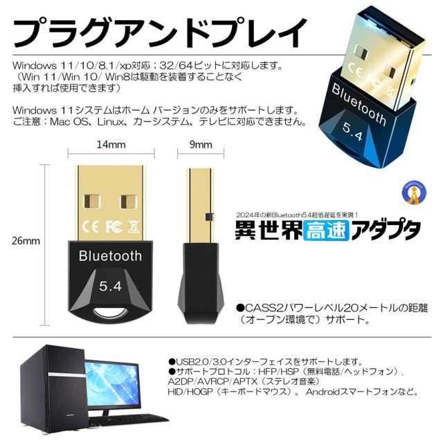 2024年 新型 Bluetooth5.4 アダプタ 超低遅延 ドライバー不要 Bluetooth 無線 超小型 ドングル MARUADA s-kk2405-50a