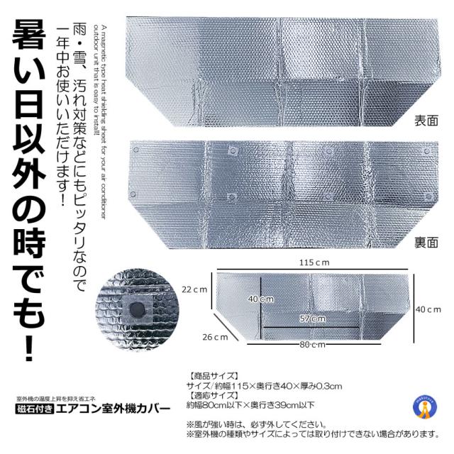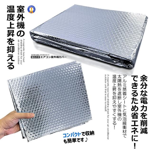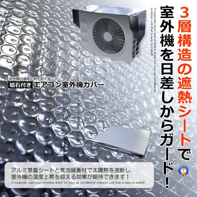 磁石付き エアコン 室外機 カバー 遮熱シート マグネットタイプ 保護 アルミ 室外機カバー シート 遮熱 日除け JISHAKABA
