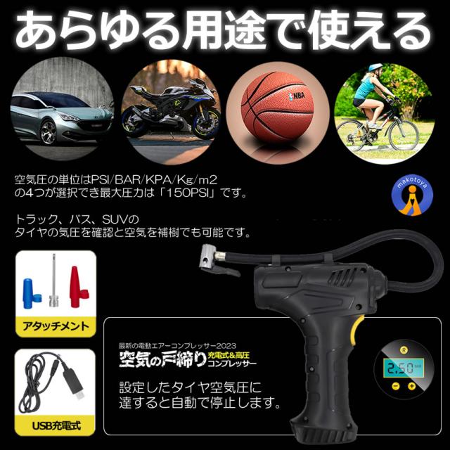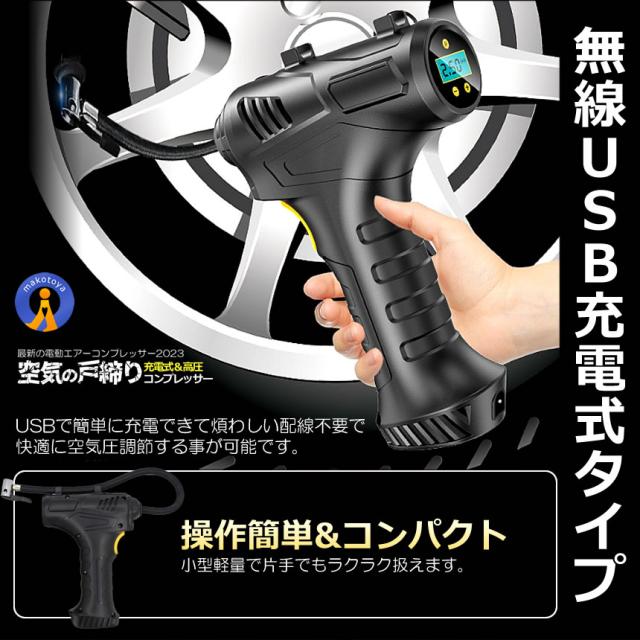 2個セット エアコンプレッサー 小型 USB 充電式 コードレス 電動空気入れ 2000mAh メンテナンス エアーコンプレッサー バイク 自転車 ボール MUSEEKIKU s-kj2211-46a