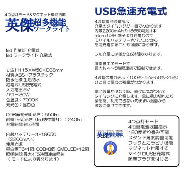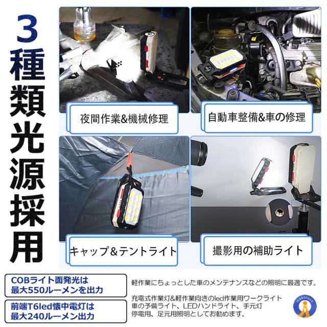 5個セット ワークライト 折りたたみ式 投光器 作業灯 多機能 懐中電灯 USB充電式 ハンディライト マグネット 緊急 災害 夜釣り 登山 軽量 アウトドア YOSAWAR s-kj2211-80a