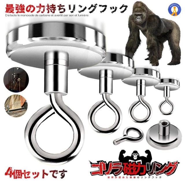 マグネットフック 強力 4個セット 直径25mm 磁力リング 耐荷重最大20kg 磁石 キッチン 強力磁石 レンジフード 冷蔵庫 収納 吊り下げ 金属 4-MEGGAGA s-kj2212-27a