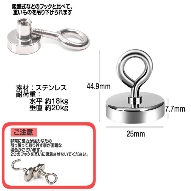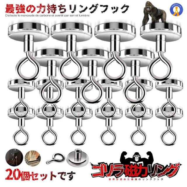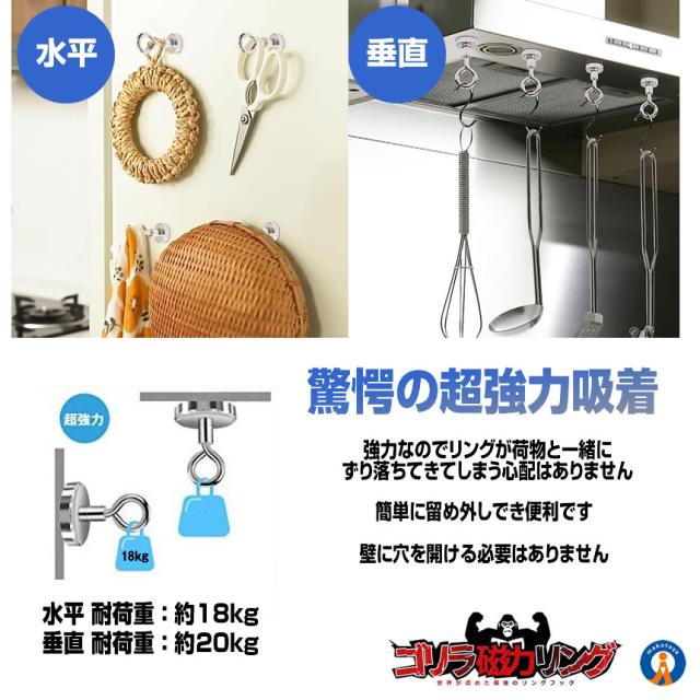 20個セット マグネットフック 強力 直径25mm 磁力リング 耐荷重最大20kg 磁石 キッチン オフィス レンジフード 冷蔵庫 浴室 収納 吊り下げ 4-MEGGAGA s-kj2212-27a