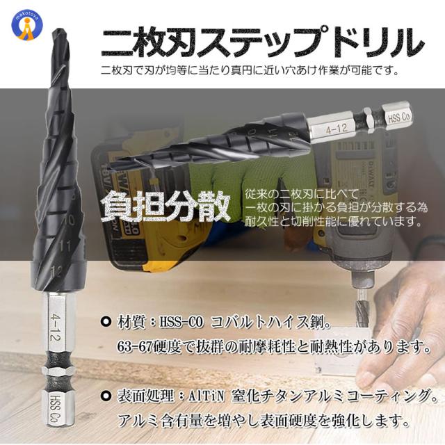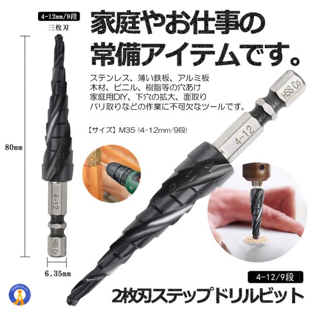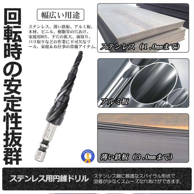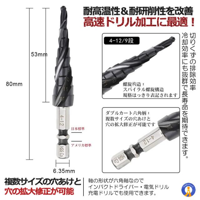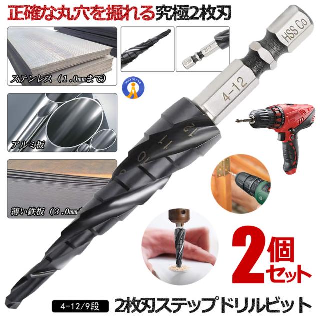 2個セット スパイラル ドリルビット 六角軸 M35 4-12mm 9段 ステンレス用 六角軸 穴あけ たけのこドリル 円錐ドリル DIY 電動ドライバー SUPADORILL s-kj2212-28a
