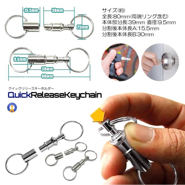 クイックリリースキーホルダー2個セット クイックリリース キーホルダー カギ 鍵 かぎ 分割 分離 着脱式 簡単分離 簡単脱着 バイク 車 家 ボタン式 2-QUIRIKEY s-kj2302-21a