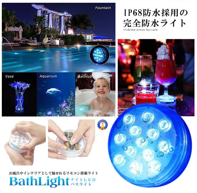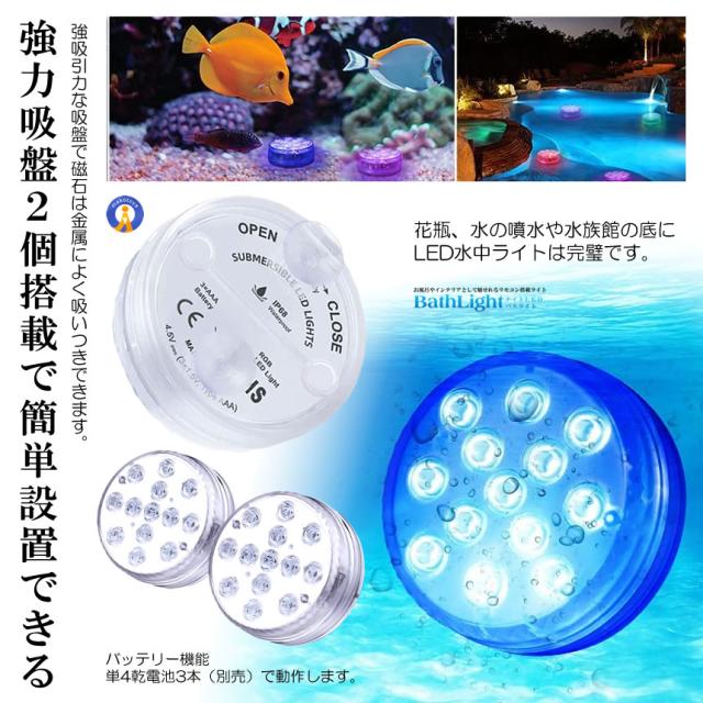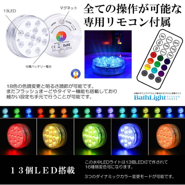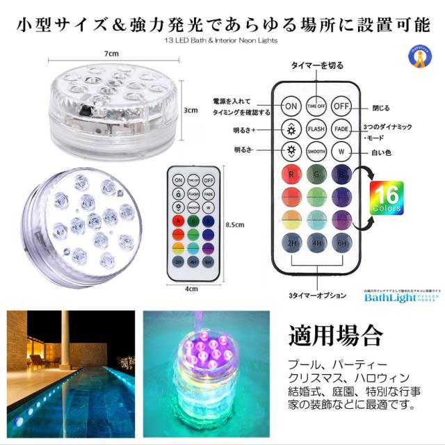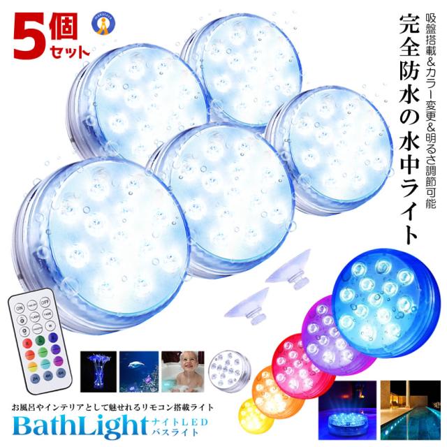 5個セット バスライト 吸盤式 リモコン搭載 タイマー機能付き 16色 LED 明るさ調節 色調変更 風呂 プール 水槽 インテリア 防水 水中ライト IP68級 BATHLIGHT s-kj2302-22a