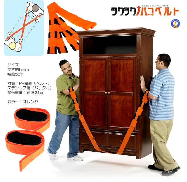 引っ越し キャリーベルト 2個セット 運搬 ベルト 家具移動 便利グッズ 家具 洗濯機 段ボール 荷物 200kg 負担軽減 サイズ調整 冷蔵庫 家具 2-HAKOBERUTO s-kk2302-47a