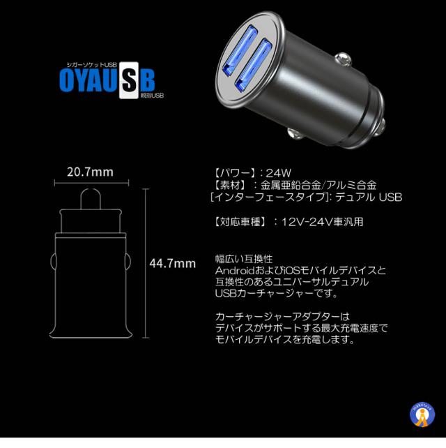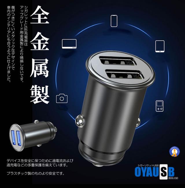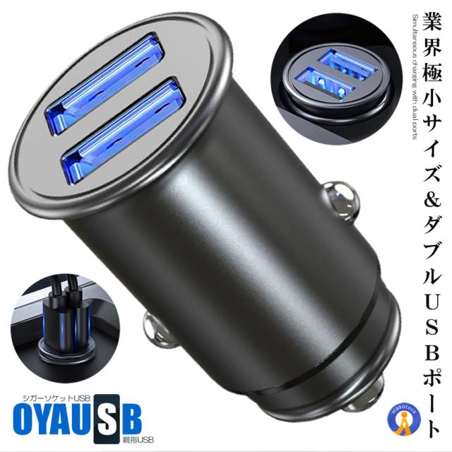 シガーソケット USB 新作 ミニシガーソケット usb2口 全金属 軽量 カーチャージャー 車 充電器 スマホ コンパクト スマート 親指USB OYAUSB s-kk2302-50a