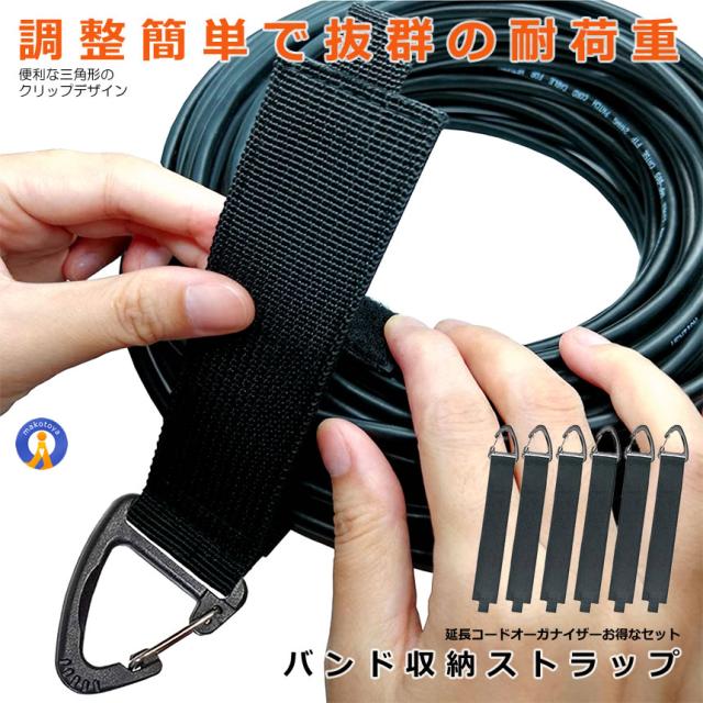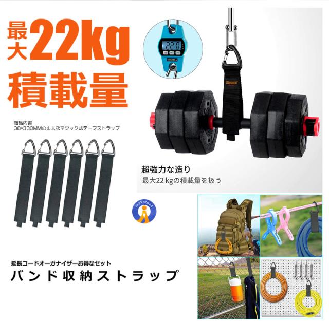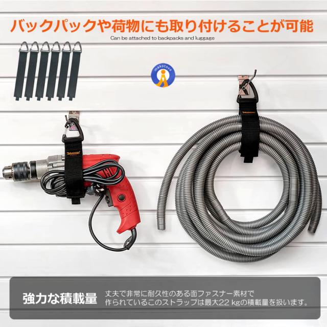 バンド 収納 ストラップ 6本セット 延長コード オーガナイザー ハンガー マジック式 壁掛け用 バックル付き ケーブル ワイヤー 積載量 22kg 6-BANSHUTO s-kk2303-37a
