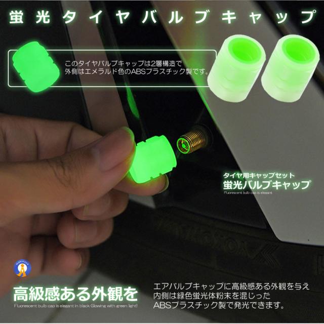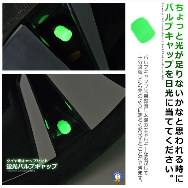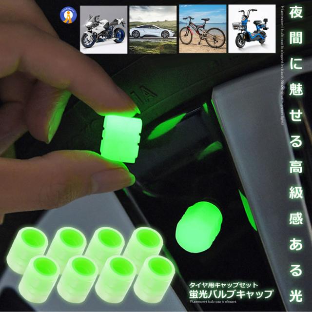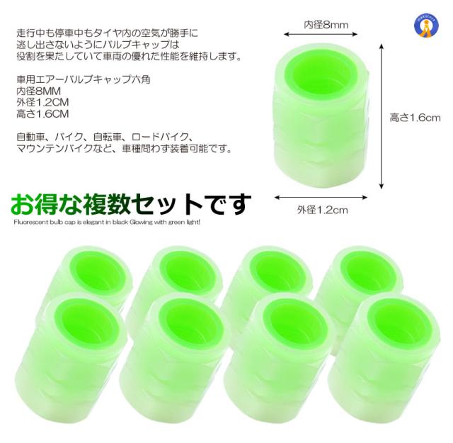 バルブキャップ 8個セット 蛍光 車 仏式 タイヤ グリーン エアバルブキャップ ホイール 軽量 自転車 バイク 光る 蓄光 緑 M8 六角 汎用 夜光 8-KEIBARU s-kk2305-24a