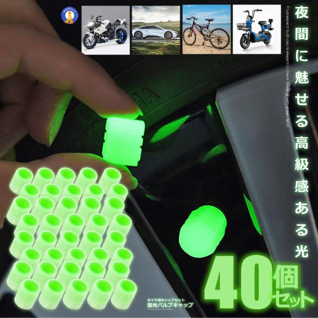 40個セット バルブキャップ 蛍光 車 仏式 タイヤ グリーン エアバルブキャップ ホイール 軽量 自転車 バイク 光る 蓄光 緑 M8 六角 汎用 夜光 8-KEIBARU s-kk2305-24a