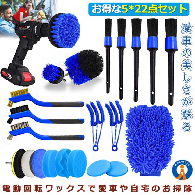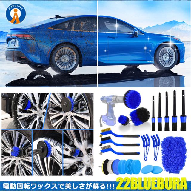 2セット ドリルブラシ 22点セット スクラブパッド 洗車 磨き ドライバー アタッチメント カーペット クリーニング 愛車 手入れ 22BLUEBURA x-kk2302-42a