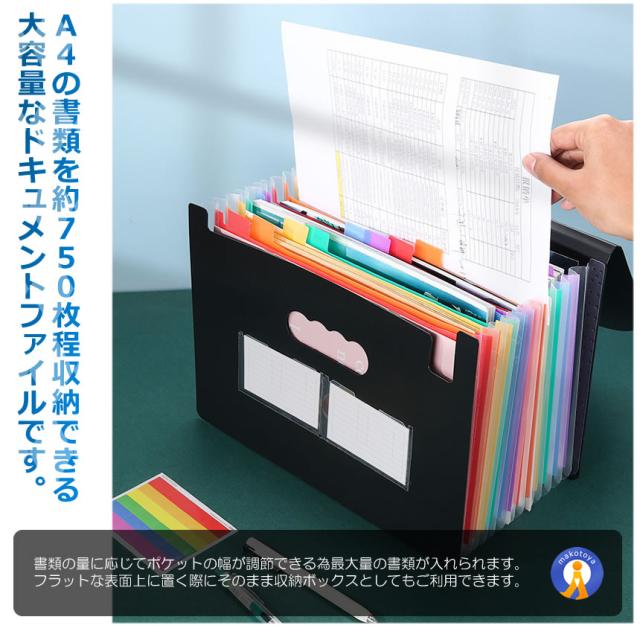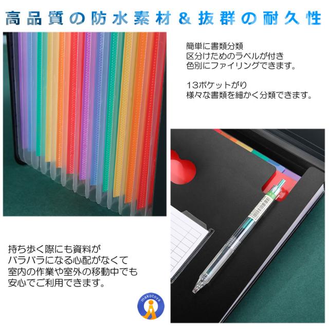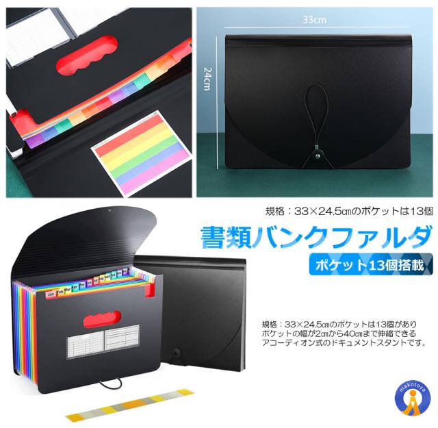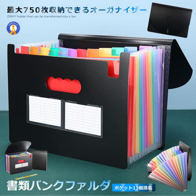 書類収納ファイル 750枚収納 A4 13ポケット 書類ケース 持ち運び じゃばら 書類整理 アコーディオン式 見やすい 書類バンクフォルダ 保管 DDOCFAR-13 s-kj2210-20a