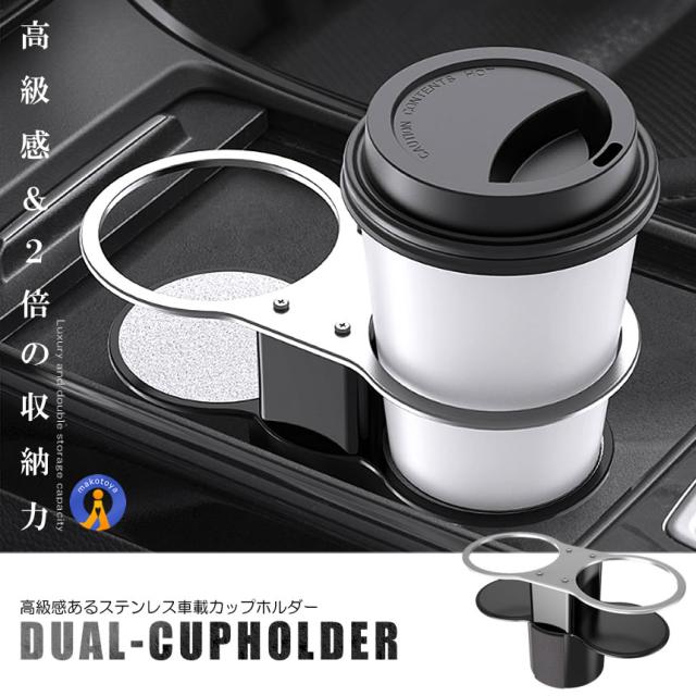 車用ドリンクホルダーは2つの飲み物を置ける便利な2in1デザインです。
