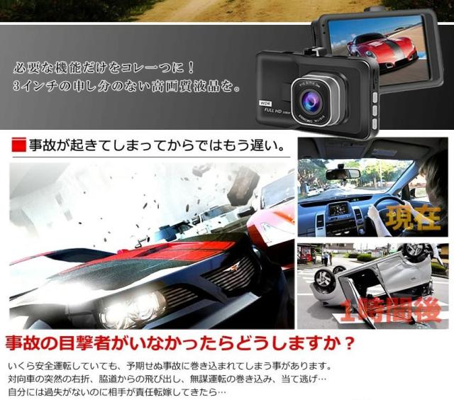 ドライブレコーダー ドラレコ 3インチ 大画面 液晶 1080P 上書き 人気 おすすめ ドライブレコーダー 工事不要 自動 録画 あおり運転 駐車監視 DR-T626 e1108-1a