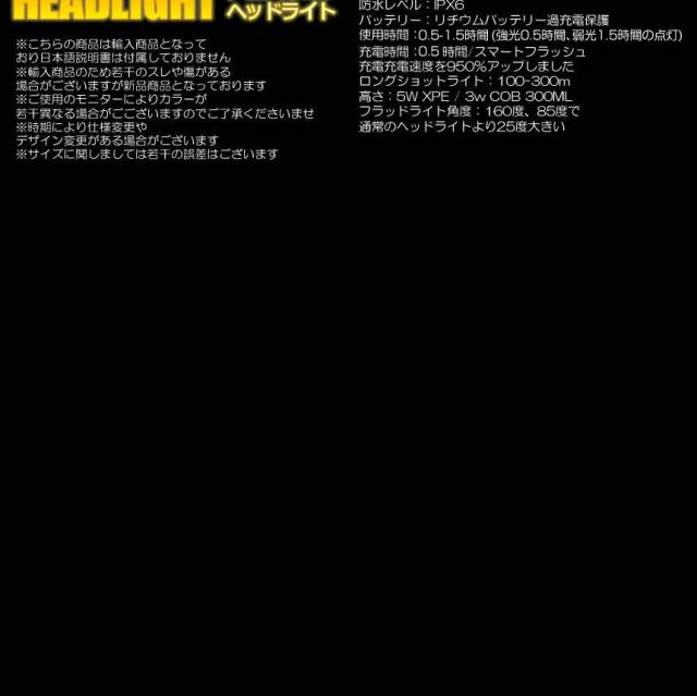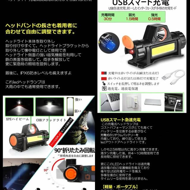 この充電式LEDヘッドライトはヘッドライト