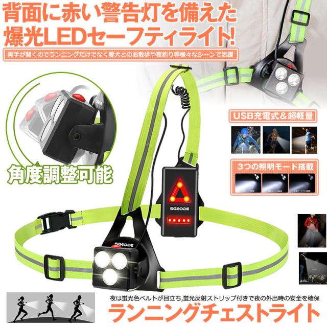 ランニングライト チェストライト ジョギングライト 500ルーメン 爆光 USB充電 作業灯 警告灯 調整可能 アウトドアライト LEDライト 反射バンド 反射 TYESRANG m-ki0116-10a