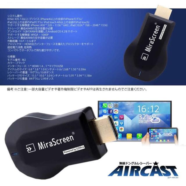 エアーキャスト ワイヤレス HDMI 無線 ミラーキャスト android iPhone 高画質 接続かんたん 持ち運び ゲーム 会議 イベント プレゼン 講演 AIRCAST e1128-3a
