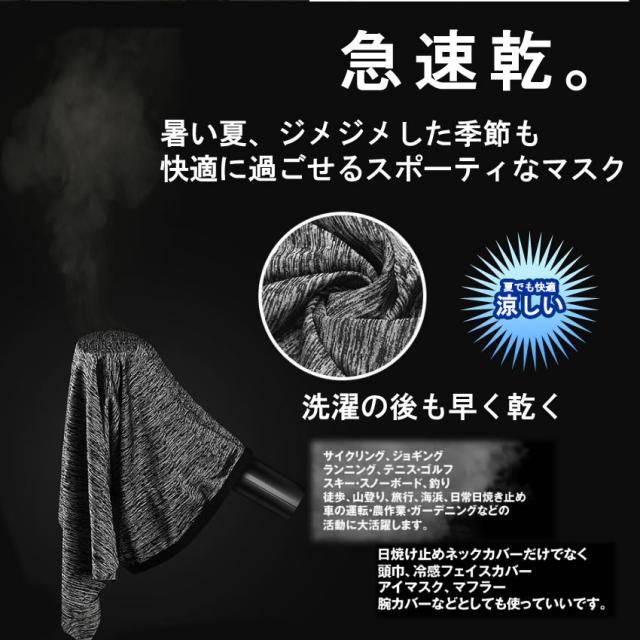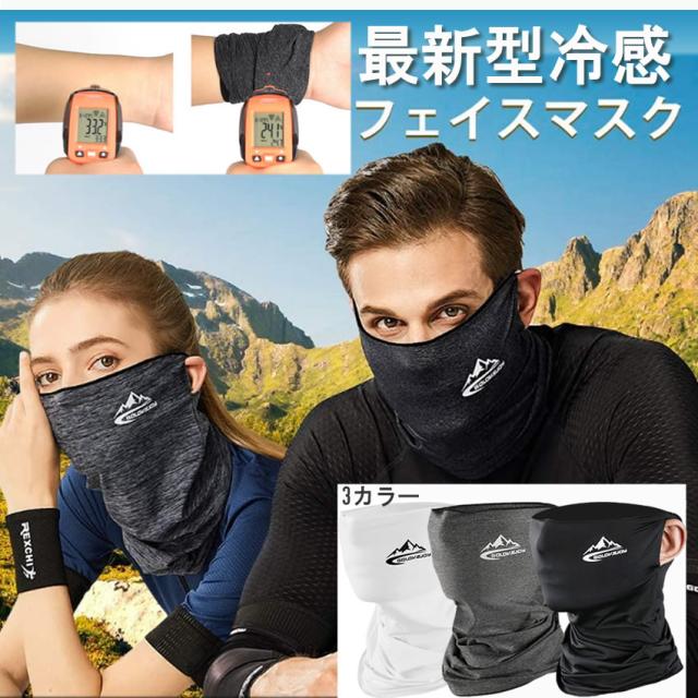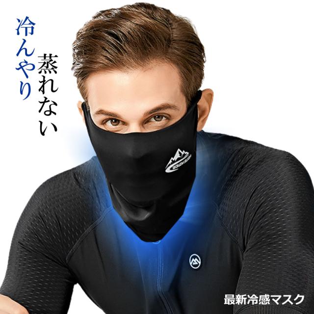 マスク ブラック 冷感 新型 フェイスカバー ズレない 夏 UVカット ゴルフウエア ジョギング 男女兼用 紫外線対策 吸汗速乾 飛沫対策 ランニング QREIKAN-BK o-kh0604-15a