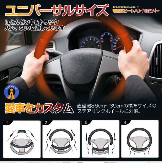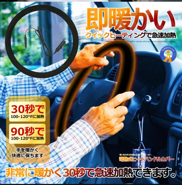 ハンドルカバー 電熱式 ヒーター 汎用 シガー給電 即暖 自動車用 12V 暖房 防寒 発熱 カー用品 ステアリングヒーター 暖かい ドライブ HANDOHOT s-kj2211-34a