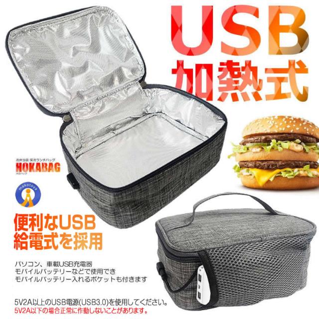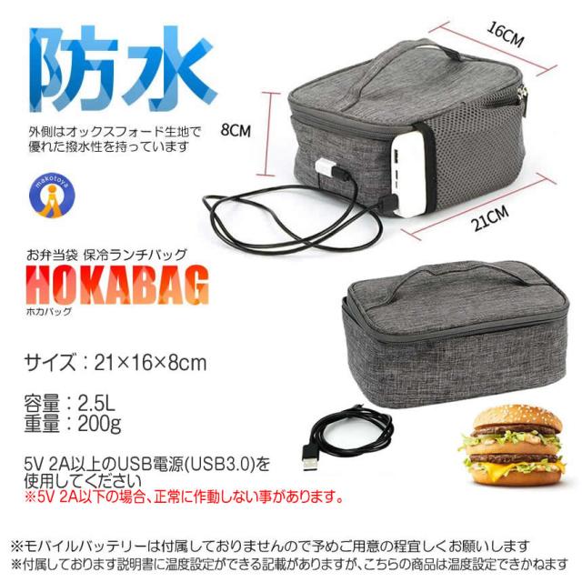 保温バッグ お弁当 USB給電式 保冷 保温 2.5L 50度まで保温 大容量 軽量 防水 持ち手付き お弁当箱 おにぎり パン 弁当 ほかバッグ 通勤 通学 DENHOYUBAG s-kj2210-23a