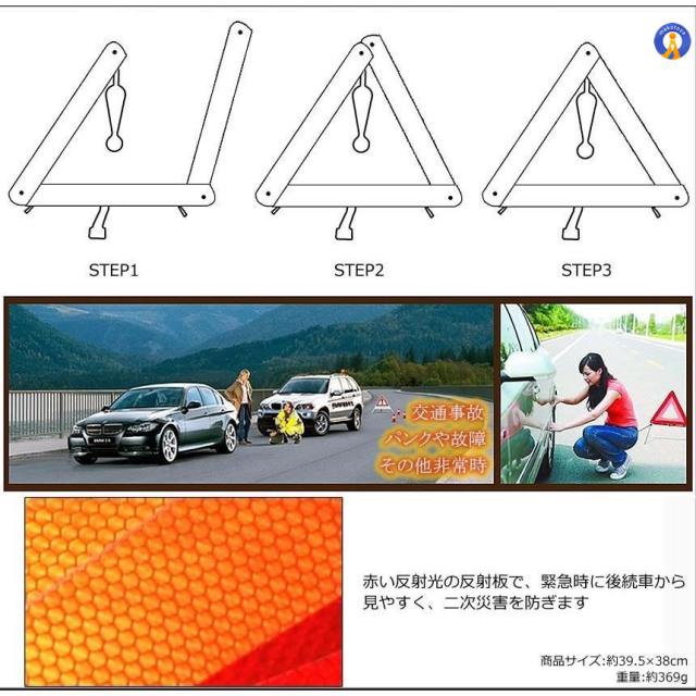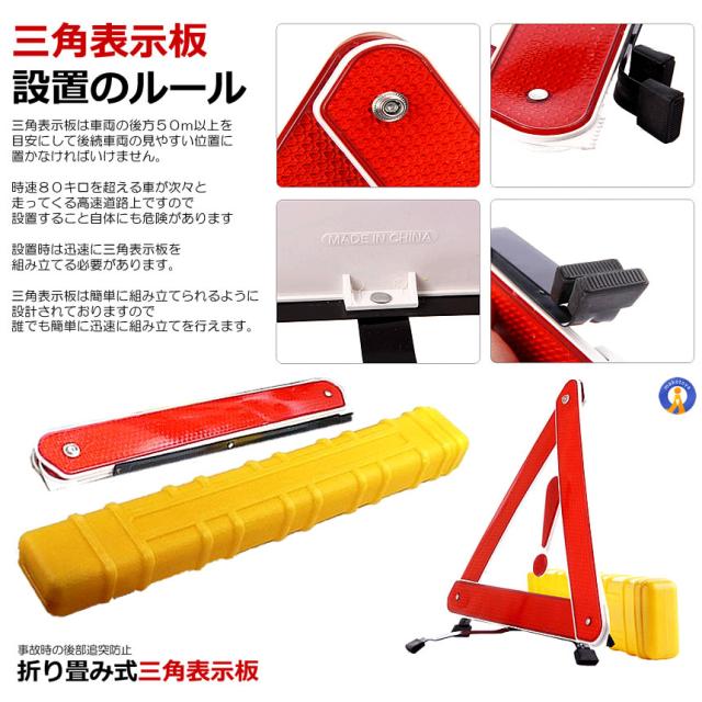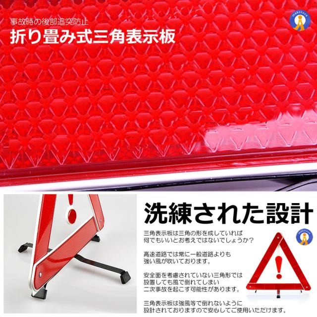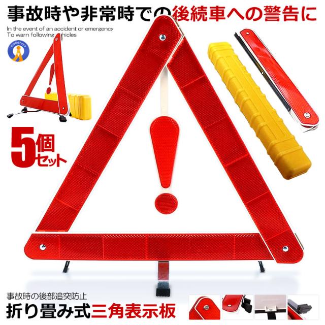 5個セット 三角表示板 反射板 警告版 セキュリティ 二次災害 三角表示 カー用品 緊急 反射板 緊急時 非常時 組立 コンパクト 収納BOX付き KEI b1122-2a