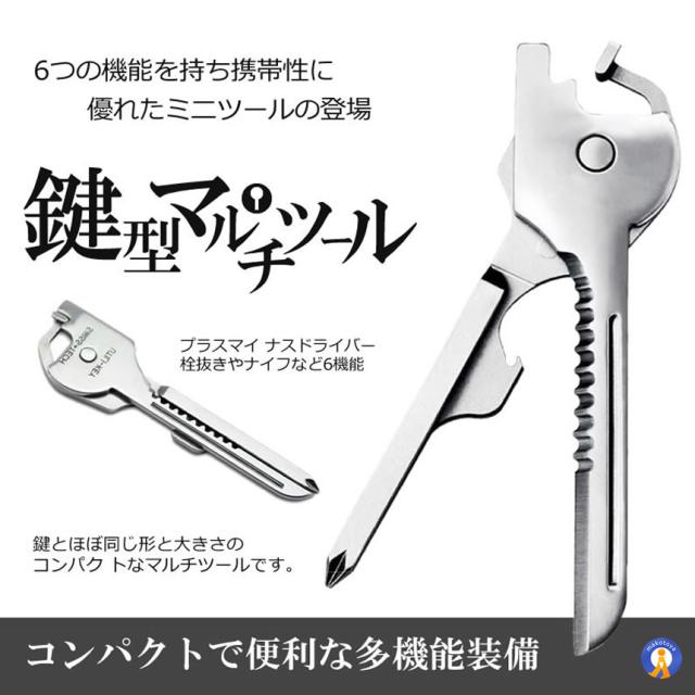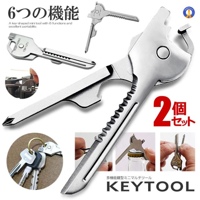 2個セット 多機能 鍵型 ミニ マルチツール 6つの機能 携帯 キーホルダー キーリング ステンレス ドライバー 栓抜き 便利 持ち運び シルバーカラー DL-KEYTUUL dl-keytuul