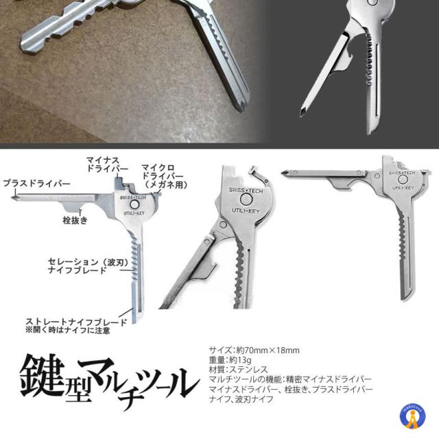 マイナスドライバー、 栓抜き、プラスドライバー、ナイフ、波刃ナイフ