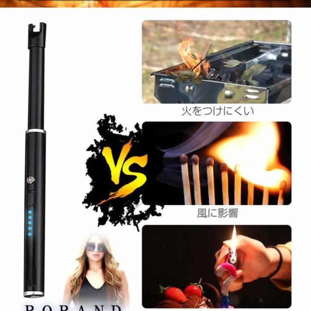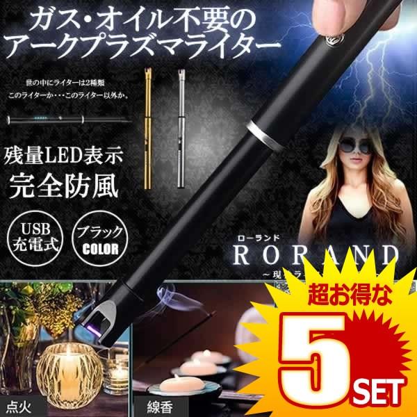 5個セット 電子ライター ローランド 充電用 ライター ブラック 防災 風に強い プラズマライター 火起こし USB充電 軽量 オイル不要 ガス不要 RORAND kf1121-30a