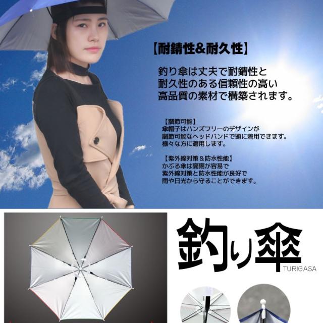 5個セット 釣り傘 ブルー かぶる傘 傘帽子 釣り用 かぶる傘 両手解放可 釣り 農作業 ガーデニング スポーツ観戦 折り畳み式 キャップ 防風 TURIGASA-BL kg0607-11a