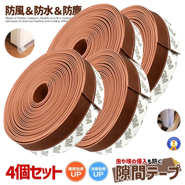 4個セット 隙間テープ ブラウン 6m ドア 窓 すきま 防止 暑さ 寒さ 騒音 防音 風防止 ホコリ 花粉 防止 暖房効果 冷房効果 節電 テープ 2-SUKITAPE-BR kg0705-2a