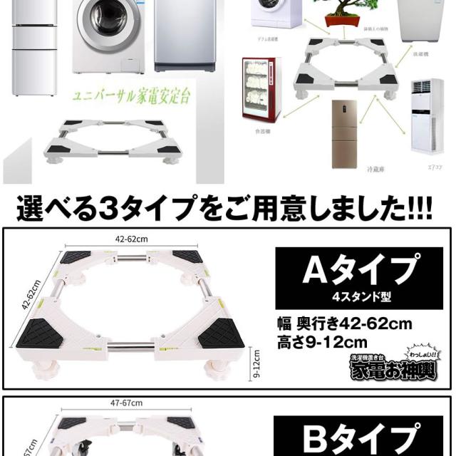 2個セット かさ上げ台 Aタイプ 底上げ 高さ調整可能 洗濯機台 洗濯機 冷蔵庫 家具 置き台 滑落防止 移動 防振 防音ドラム式 全自動式 縦型 騒音対策 OMIKOSI-A kg0717-11a