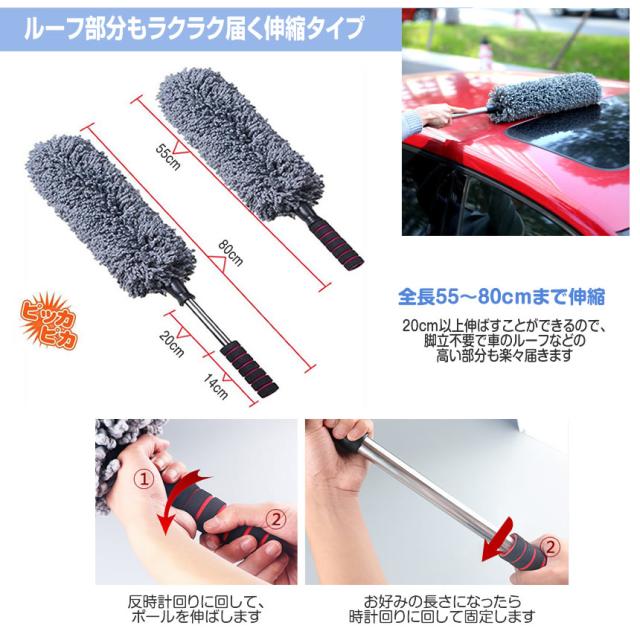 2個セット ハンディモップ 伸縮可能 吸着性 洗車 モップ マイクロファイバー ダスター 傷防止 軽量 伸びる 掃除 バク落ち お掃除用品 水洗い可能 BAKUMOP kg0808-1a