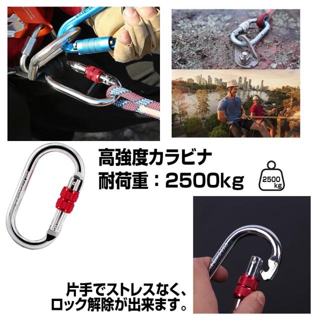 4個セット 登山用 山登り用 カラビナ 25KN 強高度カラビナ クライミングカラビナ ハードスチール 登山用具 キャンプ 高強度 空中作業 野外活動 2-KARABI25 m-kh0912-56a