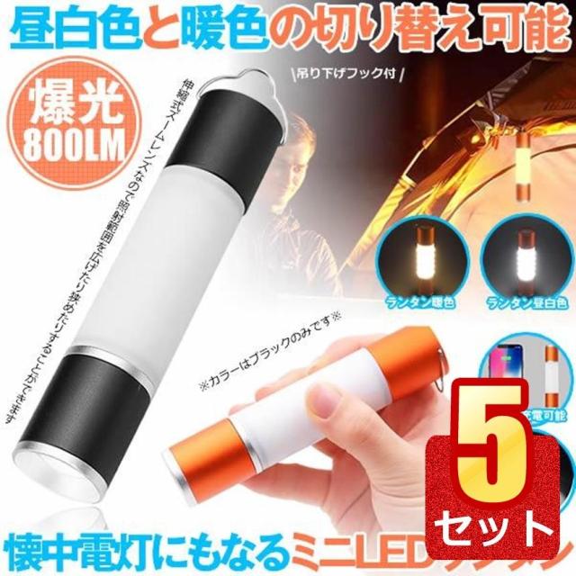 5個セット LEDランタン 充電式 USB 明るい 懐中電灯 テントライト キャンプライト ハンディライト ズーム 昼白色 電球色 暖色 スマホ アウトドア RANTOU m-kh0915-51a
