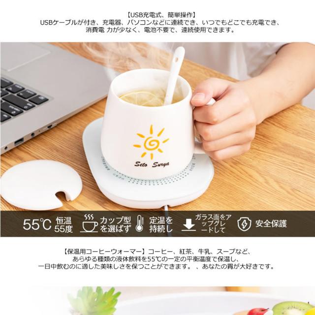 2個セット カップウォーマー 保温コースター 給電式 USB マグカップ 55℃適温 コーヒーウォーマー コップ保温器 オフィス 安全 卓上 キッチン用品 HOKOSUTA m-kh1017-54a