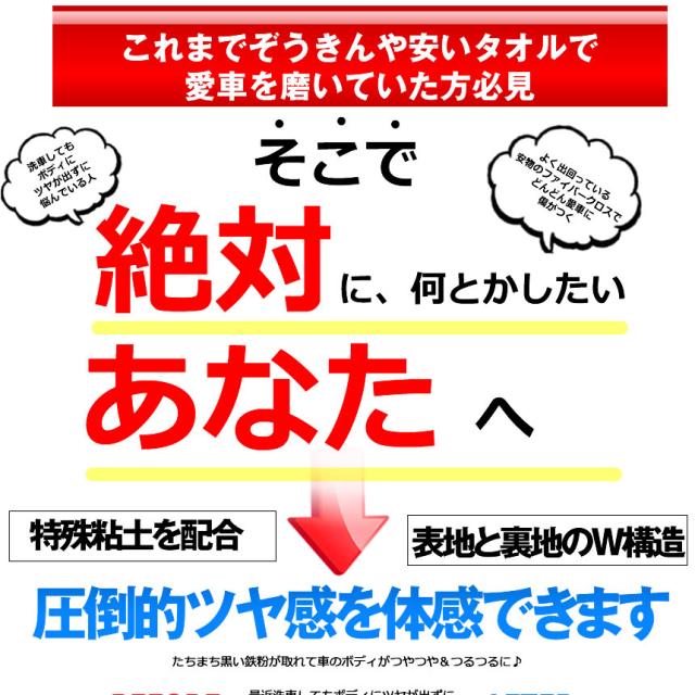 青面素材:マイクロファイバー素材(洗車用)。力を入れて擦らなくてもすっきり落として、キレイに磨くことができます。