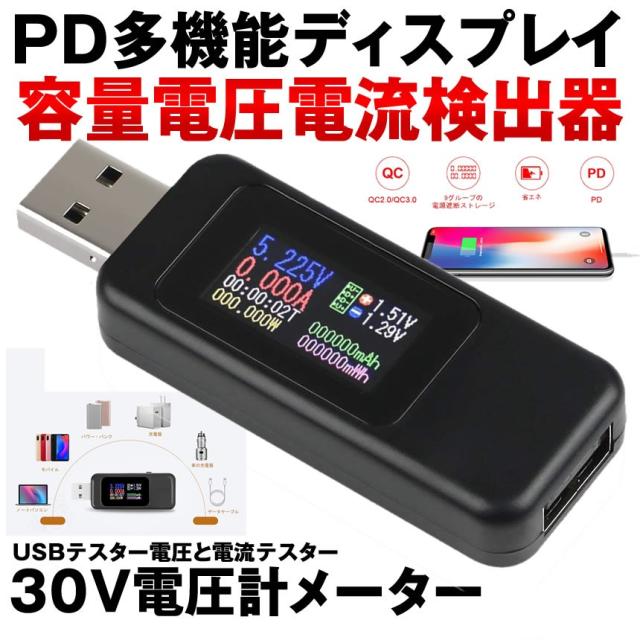 2個セット 電流計り器具 電流 検出器 容量電圧 USBチェッカー電圧 電流テスター 5.1A 30V 電圧計メーター USB データー測定 温度測定 TESSMAS s-kh0124-13a