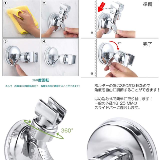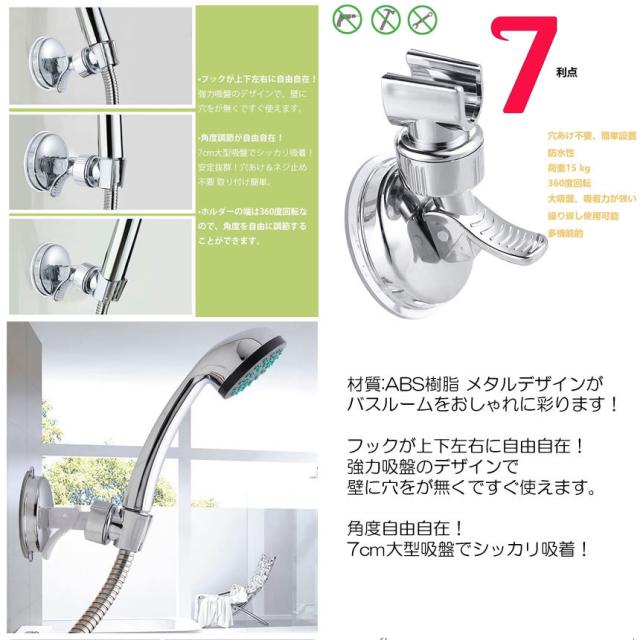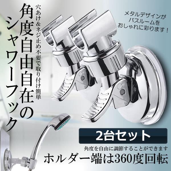 2個セット シャワーフック ホルダー ヘッド 吸着 強力吸盤 お風呂 取付 角度調整可能 角度自由 バス用品 お風呂用品 スタンド 壁付 おしゃれ 取付簡単 SHAHUKU s-kh0927-11a