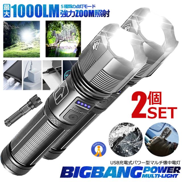 2個セット LED 懐中電灯 高スペック USB 充電式 LEDライト 1000lm 強力 ストロボ USB 脱出ハンマー 災害 防水 災害 明るい LEDランプ BAKUKAI