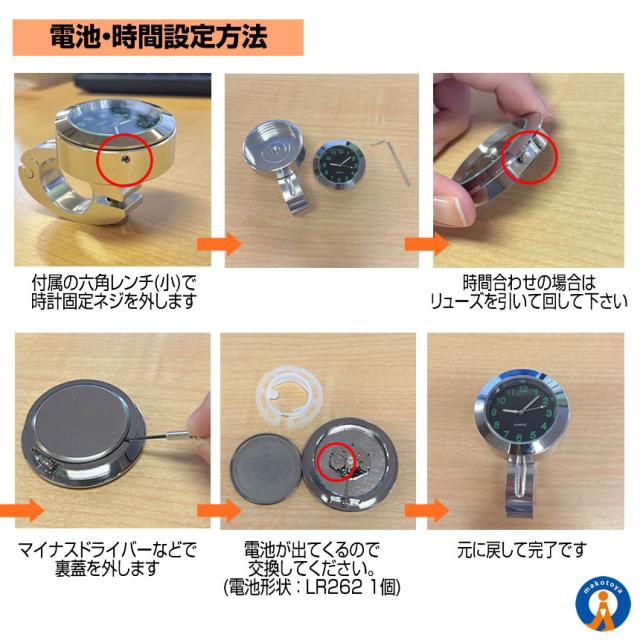 2個セット バイク 時計 アナログ時計 オートバイ ツーリング バイク用品 ハンドルバー シルバー 防水 耐衝撃 ボタン電池 取付簡単 レンチ付き OTOHAVA s-mh0201-20a