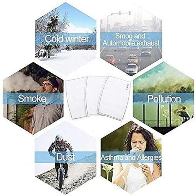 ろ過技術:5層の活性炭フィルター、10個の活性炭フィルターインサート。 (交換用)5層保護材フィルターは、大気汚染防止を効果的に防止できます。アンチダスト、煙、汚染、灰、有害な粒子を吸い込むリスクを軽減します。