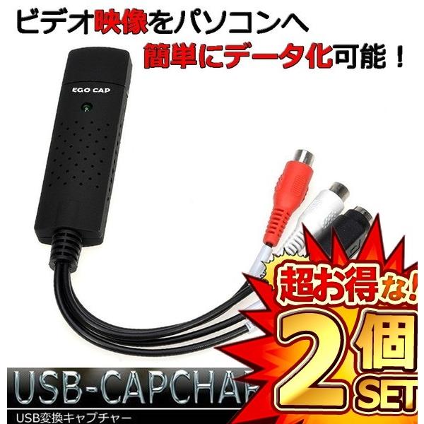 2個セット ビデオキャプチャ— コンポジット 変換アダプター USB変換 S端子 赤 白 黄 アナログ ゲーム 配信 録画 テレビ ビデオ モニター PC パソコン EGOCAP f0215-3a
