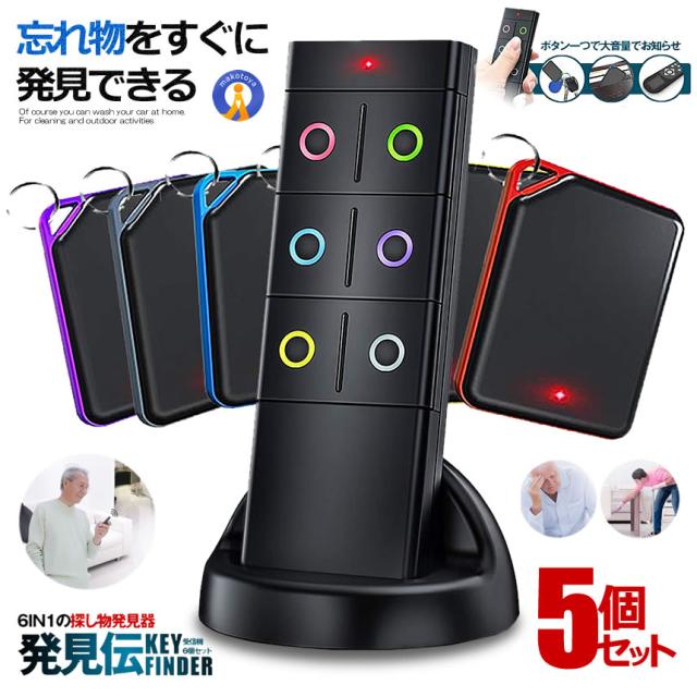 5個セット 探し物発見器 忘れ物探知機 キーファインダー 6in1 小型 キーリング付き 落し物防止 忘れ物防止 探す アラーム 置き忘れ 鍵 紛失防止 SINHAKED s-mh0807-14a