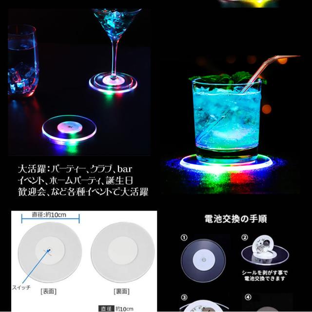 10個セット LEDコースター 光る コースター ライト 薄型 おしゃれ イルミネーション ライトアップ パーティ グラス ボトル ボタン電池 クラブ BAR 2-ODOKOU s-mh0918-12a