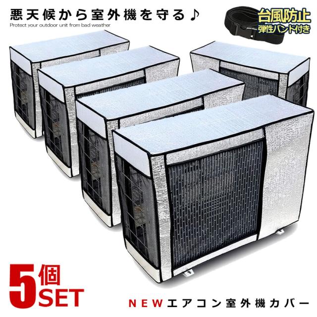 5個セット 室外機カバー エアコン アルミ 保護カバー 日光 雨 雪 風 ホコリ 遮熱保護 劣化防止 省エネ バンド付き 遮熱 節電 エアコンカバー EACCBB s-mi0611-13a
