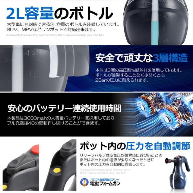 2個セット 電動 フォームガン 洗車 泡でラクラク 洗車 フォームガン 車 クリーナー 泡 スプレー FOAMRAKU s-kk2408-30a